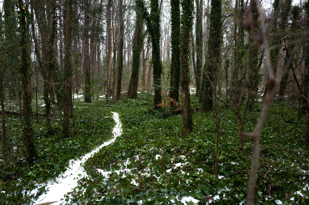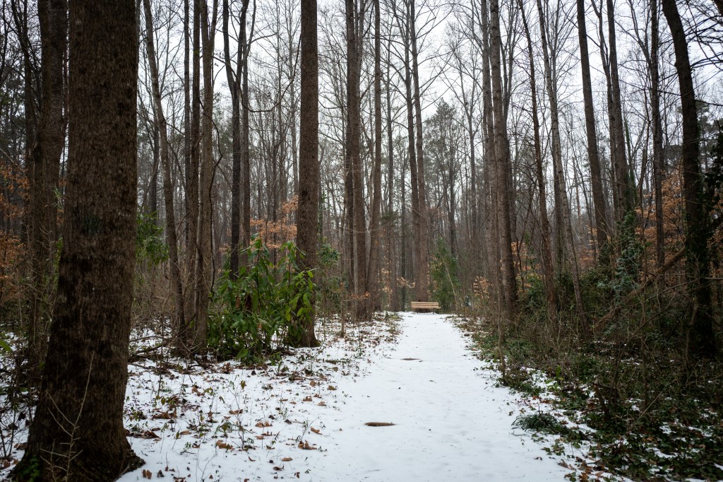 Instead of another photo essay of what uptown Charlotte looks like in the snow and ice (nothing wrong with that of course) I opted for some quiet solitude for a couple hours. I headed (very slowly) to one of my favorite places in town, Evergreen Nature Preserve, to observe the peace and quiet of a mid January snowfall (icefall?). Here’s what I saw and what I heard. Be sure to play the audio as you leisurely view these images.